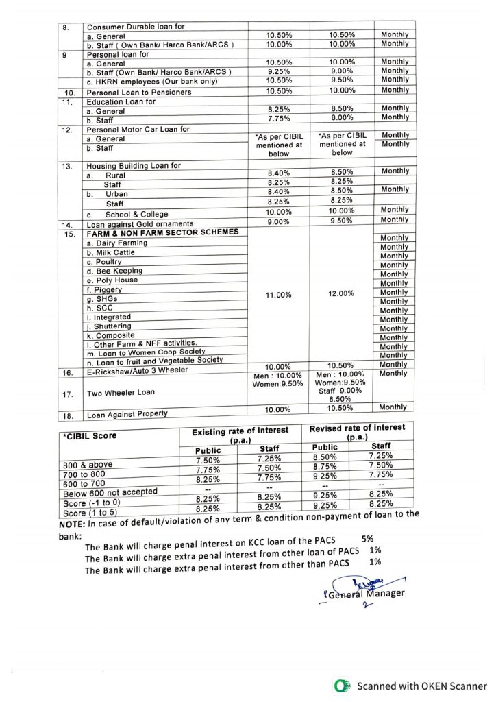 M.T. Loan through PACS Agri MT Loan for Agri allied (Bio Gas) Milk cattle/cart bullock and sponsored Non Agri. |